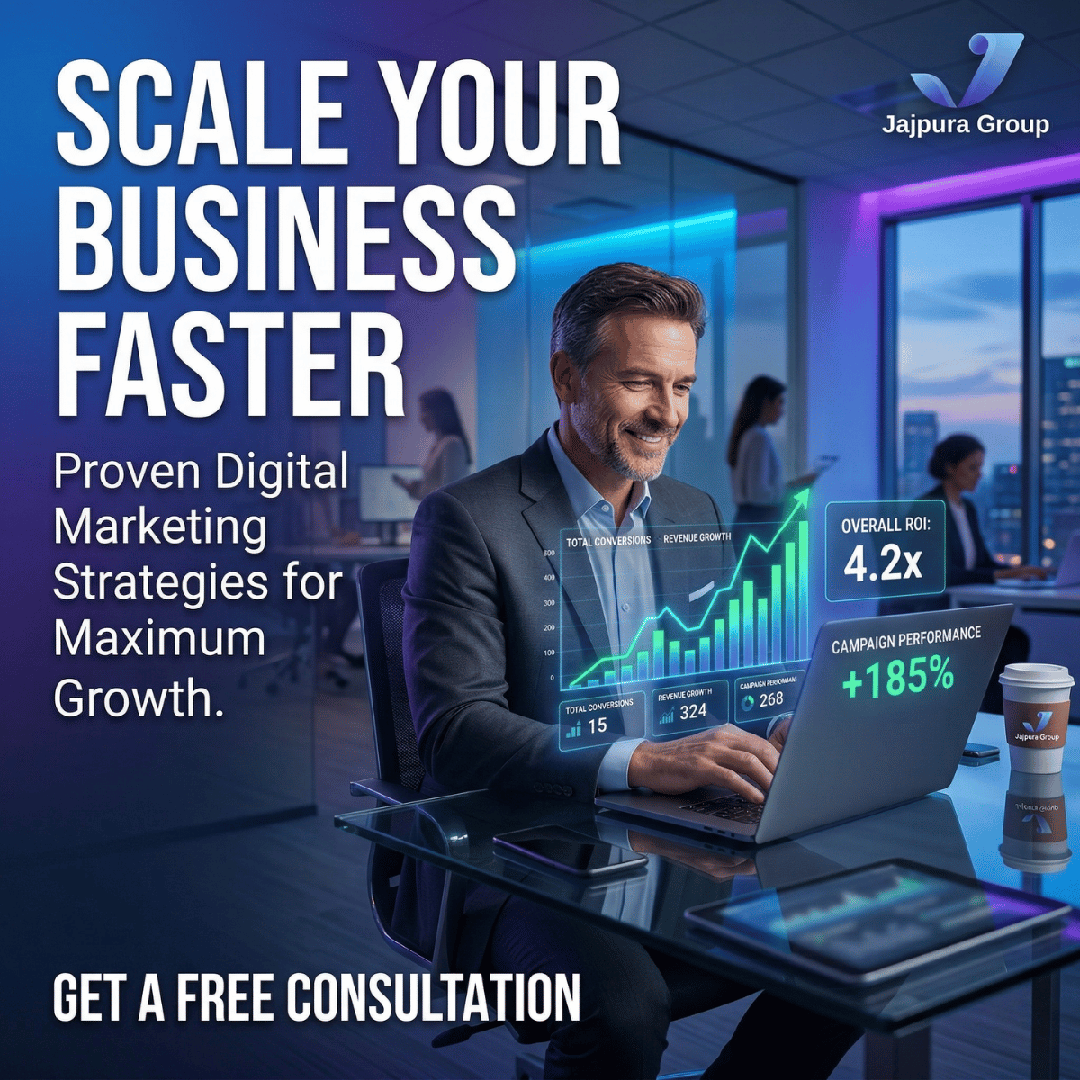 Jajpura Group is a professional digital marketing agency based in Indore, India, delivering data-driven marketing solutions to businesses across India and worldwide. We specialize in Google Ads, Meta Ads, Search Engine Optimization, Social Media Marketing, Website Design, and Content Marketing — providing end-to-end digital marketing services under one roof.
